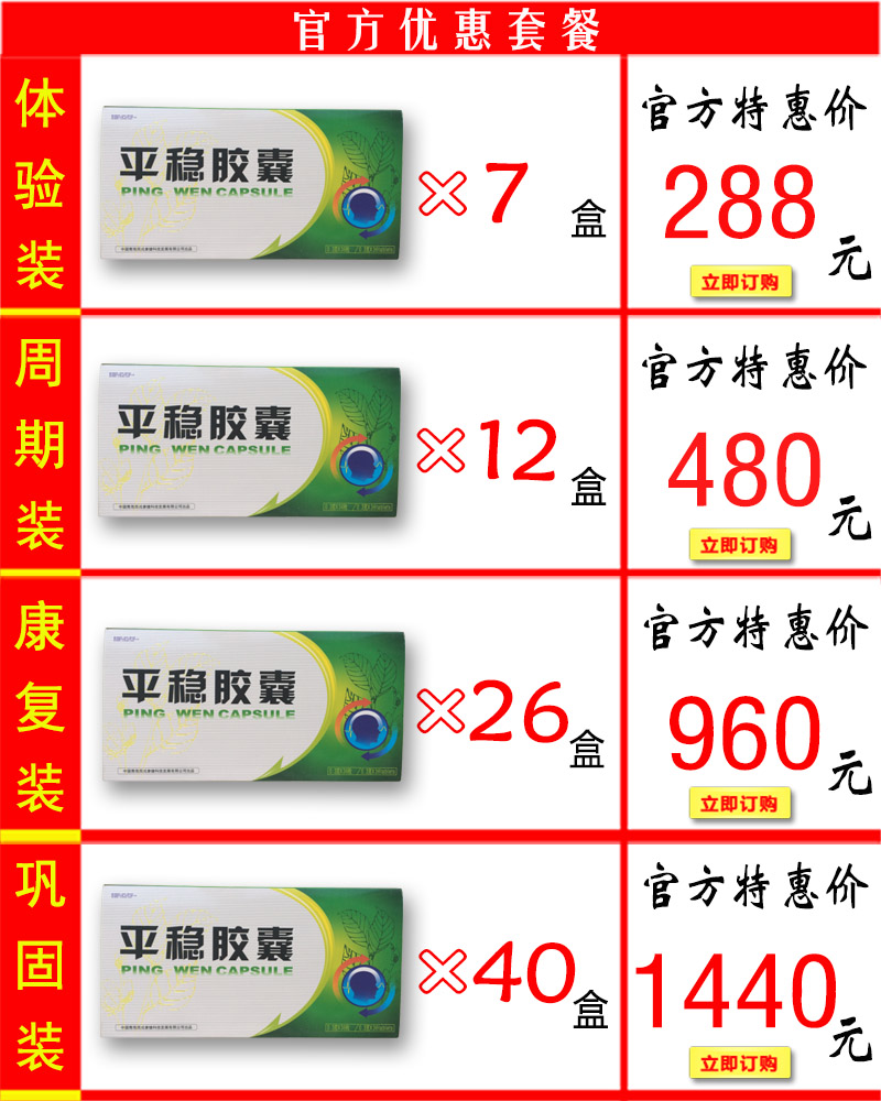 平稳胶囊促进肌体自身免疫功能提高,增强脉压自动调节功能,保持血压长期平稳正常,对各类型高血压患者服用冶疗,3至5天见到明显效果,15天左右血压基本恢复正常,连续加以巩固服用冶疗1至2周期即可脱离一切冶疗,高血压患者不需长期服药变为现实。