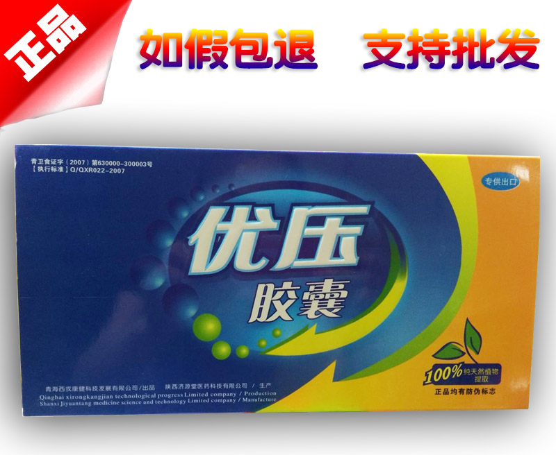 优压胶囊由厂家青海西戎康健科技发展有限公司采用药食同源的海带根、芹菜根、葛根、柿树叶、银杏叶、苦丁茶叶、蝮蛇、决明子、马紫菜等多种天然名贵中草药材炼制而成。优压胶囊对血压偏高、血脂偏好以及长期受高血压并发症困扰的中老年人群具有良好的康复保健作用。优压胶囊秘方源自千年医学珍藏,经科学配比,运用现代生物技术精制而成,具有降压稳压、养心护脑、防止并发症的神奇功效。优压胶囊直接进入到体内作用到受损处,其强大的药气可通过气血直透病灶的不通之处,故此对血压偏高问题效果显著。